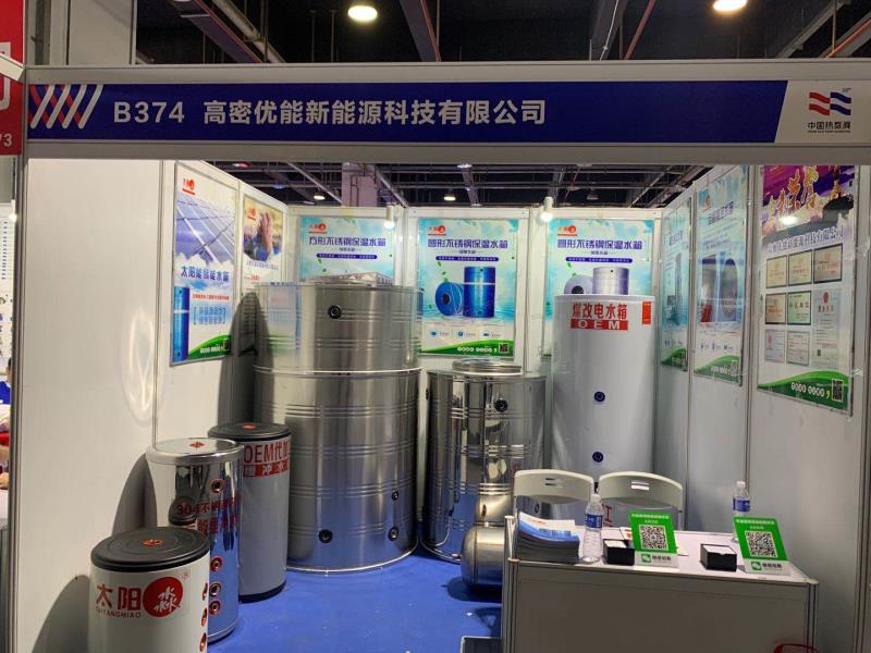 高密優(yōu)能專業(yè)生產(chǎn)不銹鋼水箱,不銹鋼防圓水箱,不銹鋼方水箱,空氣能緩沖水箱。這次參展帶的是空氣能水箱,規(guī)格可以定制。